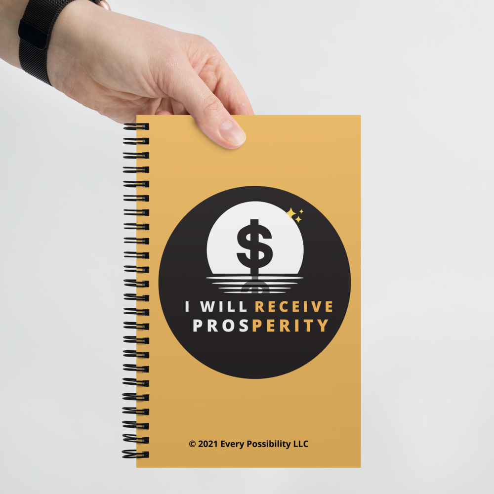 I Wil Receive Prosperity - Black and Gold - Spiral Notebook